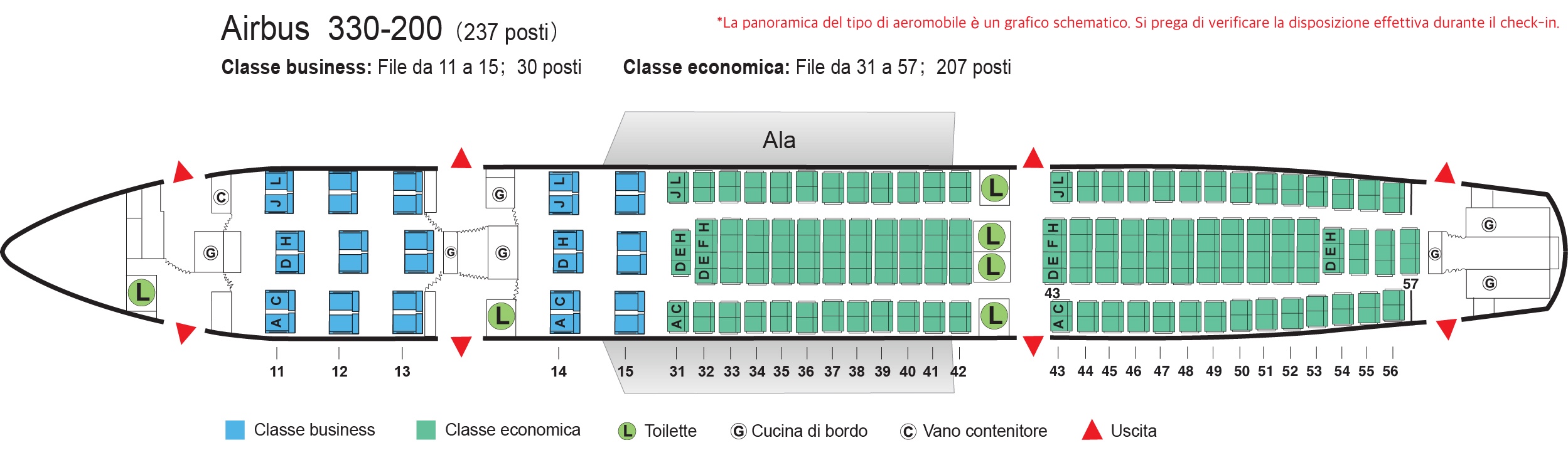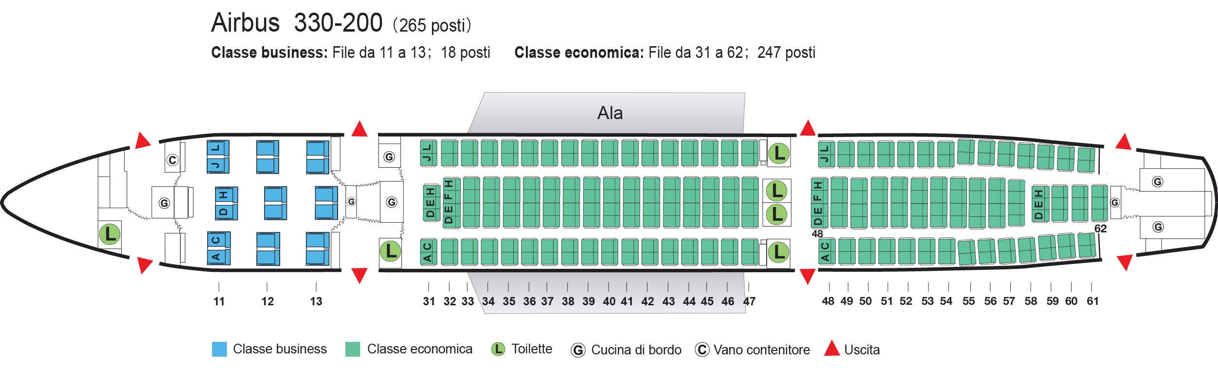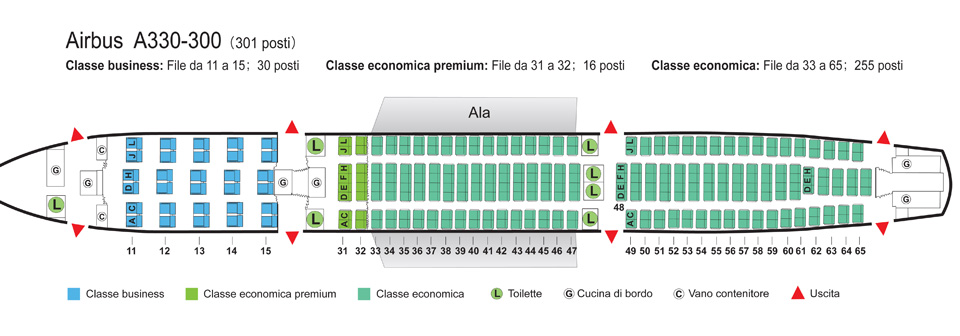 | Totale posti | Classe business | Classe economica premium | Classe economica |