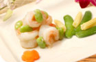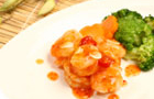 Preparato con gamberi di mare freschi e salsa Kongpao. Un po 'piccante. I gamberetti di Mare sono ricchi di proteine, grassi, vitamina A, vitamina B1, vitamina B2, acidi nicotinici, calcio, fosforo e ferro.