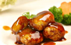 Le polpette di pesce fresco e la salsa rossa vengono fritti insieme. La polpa del pesce è tenera e gustosa, la miscela di pesce e salsa è molto aromatica. Il pesce Pangasio è ricco di proteine, minerali e vitamine liposolubili.